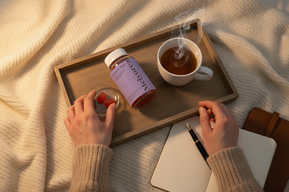 Les conséquences sont bien décrites dans la littérature scientifique : fatigue persistante, irritabilité, baisse de concentration, sensation de ne plus avoir la même énergie qu’avant. C’est ce contexte global que Somniora Nuit vise à accompagner, en s’inscrivant dans un rituel du soir apaisant et sans hormones.
